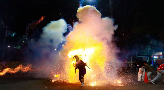 El incidente ocurrió en el marco de la tradicional quema de pólvora en honor a Jesús Cautivo, una tradición que se ha mantenido por más de 130 años como símbolo de agradecimiento por los favores recibidos y que congrega multitudes en la zona central del país.