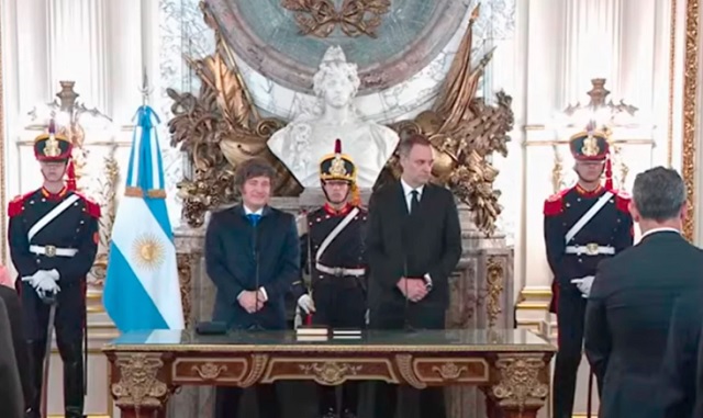 La ceremonia fue breve y se concretó después de la reunión que encabezó Milei junto a más de 100 senadores y diputados electos de La Libertad Avanza y PRO.