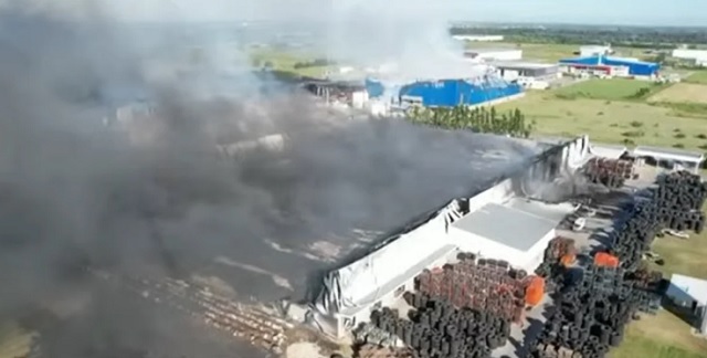 «Lo que planteamos ahí es una línea de defensa de esas empresas», explicó. El fuego se localizó en un parque industrial, con galpones de diferentes empresas de acopio logístico y productos químicos. Se estima que hay «100 galpones» afectados con diferentes magnitudes. Un galpón que acopiaba neumáticos fue el responsable de la columna de humo negro más impactante.