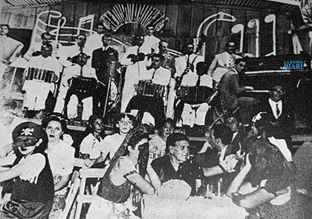 Escenario del Club Centro recreativo en el baile de Carnaval del año 1940, en el que actuó la orquesta «Los Ases»