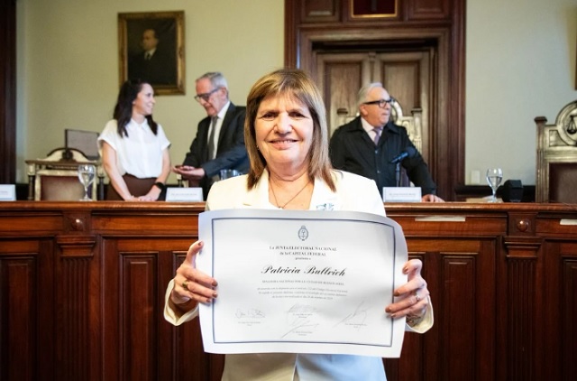 Además de Bullrich ocupará un escaño en el Senado Agustín Monteverde, que al igual que la ministra recibió el diploma de honor certificado por la Junta Electoral Nacional de la Capital Federal.