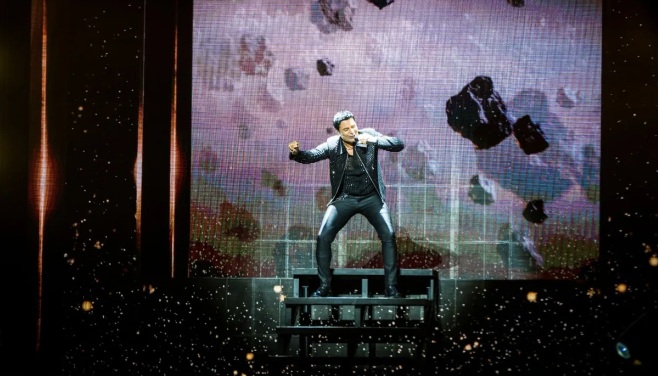 El músico, quien hacía cinco años no venía al país y regresó con auspicio de Fenix Entertainment, redondeó otra actuación brillante con su repertorio de temas y baile, con canciones como «Provócame» «Torero», «Salomé» y «Dejaría todo», entre las más salientes.