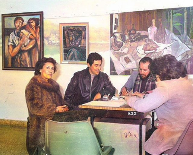 Miembros del jurado, de izquierda a derecha: Clyde Villavicencio (profesora, artista plástica), Julio Carreras (encargado del Museo de Bellas Artes “Gaspar Besares Soraire”, de La Banda). Luis Farías (pintor, escultor, prestigioso, ya entonces) y de semiperfil, casi de espaldas, Rosita Comán (profesora de Artes Plásticas). Durante la gestión del profesor Orestes Pereyra, como Director de Cultura de La Banda