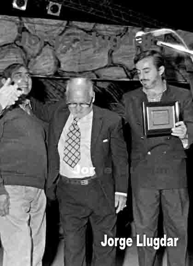El cómico Coligo emocionado, recibiendo una distinción de manos del Intendente Eduardo Chabay Ruiz junto a Carlos Carabajal