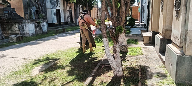 Personal de Parques y Paseos, desplegó un trabajo de desmalezamiento en distintos sectores del Cementerio Municipal La Misericordia.