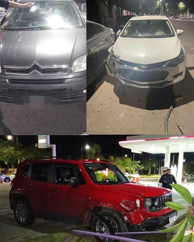 Horas después, en Roca y Pellegrini, se registró un choque en cadena protagonizado por un conductor que presentaba 1,81 g/l de alcohol en sangre. El vehículo colisionó contra dos Chevrolet Cruze y luego contra un Peugeot 207. Solo se constataron daños materiales.