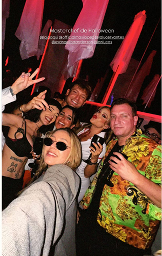 La celebración alcanzó el clímax en la fiesta central, donde el grupo “Masterchef de Halloween” se divirtió entre luces rojas, copas y una ambientación plagada de detalles decorativos propios de la fecha. Maxi López, el exfutbolista y participante, posó relajado con camisa estampada de palmeras y camiseta blanca, acompañado de Evangelina Anderson, quien eligió un disfraz de enfermera y rodeado por la cantante de RKT, Valentina Cervantes y Lucas, mientras Sofía Martínez —encargada de sacar la selfie— protagonizó el primer plano. El maquillaje y los disfraces de cada uno reforzaron el espíritu alegre y distendido de la noche, resaltando la alegría del reencuentro fuera de las cocinas y celebrando la llegada de Halloween como un momento de distensión y energía compartida.