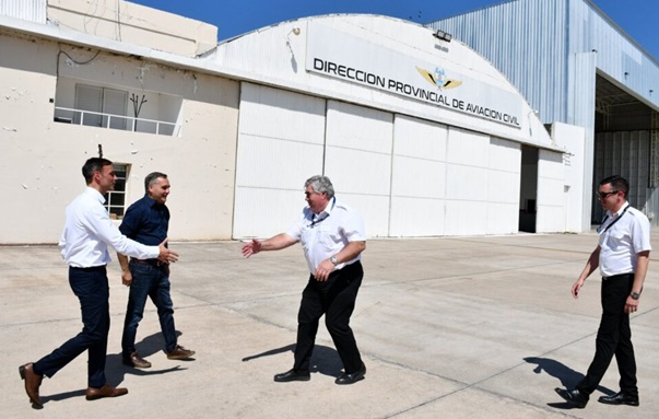 El jefe de Gabinete de la provincia, Víctor Araujo; el secretario Legal y Técnica de la Gobernación, Joaquín de Arzuaga y el equipo de Aviación de la provincia recibieron al director de Aviación Civil de Santiago del Estero, Jorge Azar, y al piloto Emanuel Zain Boix, quienes fueron parte de esta importante misión en la Patagonia.