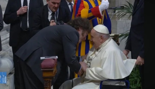 Ese acercamiento fue iniciado, tras trunfar Milei en el balotaje de 2023, por un llamado de teléfono del papa Bergoglio en noviembre de 2023 para felicitarlo por su victoria electoral.