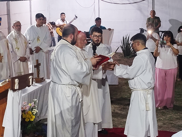 Bokalic agregó, «Gustavo, en estos largos años ha madurado mucho su encuentro con el Señor, es entregarle la vida para servir. Recibe el acolitado para servir y acompañar en el altar. Es un servicio, no es subir de categoría, no es que va a ser más que nosotros, el llamado es para servir desde ese Dios que ama, que llama al encuentro».