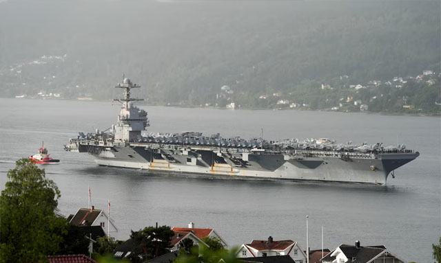 Imagen de archivo del USS Gerald R. Ford (CVN 78) de la Marina de los Estados Unidos, el portaaviones más grande del mundo, navegando por el fiordo de Oslo (REUTERS)