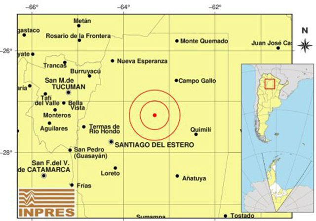 Desde el organismo nacional, se indicó que el epicentro del temblor fue a unos 89 kilómetros al sudoeste de Campo Gallo; 96 kilómetros al noroeste de Quimilí.