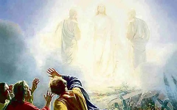 Todavía estaba hablando, cuando una nube luminosa los cubrió con su sombra y se oyó una voz que decía desde la nube: «Este es mi Hijo muy querido, en quien tengo puesta mi predilección: escúchenlo».