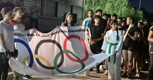La apertura se realizó con el ingreso de las Banderas de Ceremonia y el encendido de la Antorcha Olímpica a cargo de estudiantes que se destacan en distintas disciplinas deportivas.