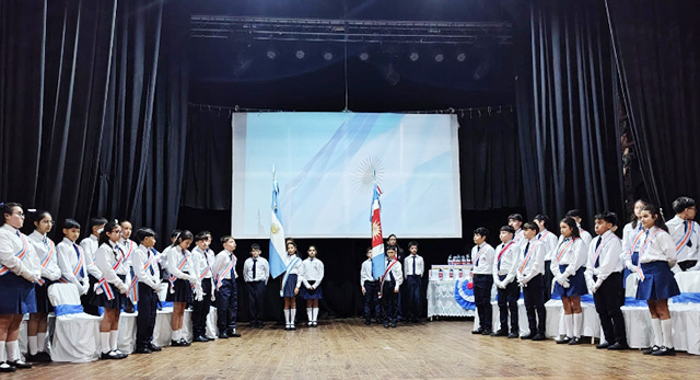 El momento central llegó cuando los estudiantes de séptimo grado realizaron su promesa a la enseña provincial y respondieron con un «Sí Prometo»a la fórmula leída por la Directora del Nivel Primario, Delia Juárez.