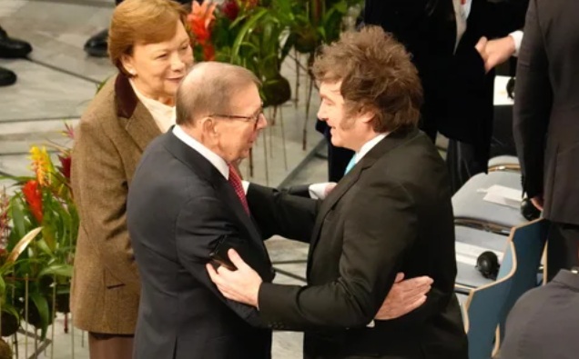A varios kilómetros de distancia, desde la administración libertaria reafirman el alineamiento con los republicanos, pero no escatiman en elogios para la ganadora del Premio Nobel de la Paz.