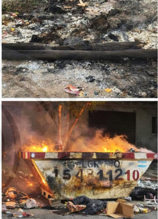De acuerdo con la información obtenida, este jueves la Sala de Monitoreo receptó un llamado alertando que en calle Pringles y Lavalle prendieron fuego a la mbasura que se encontraba dentro de un contenedor, desparramando gran cantidad de residuos sobre la vía pública.
