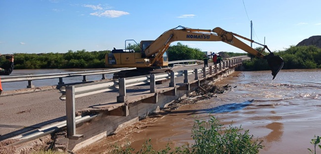 En el departamento Pellegrini también se realizan trabajos en Nueva Esperanza y Chañar Bajada, donde se construyen defensas en el puente sobre el río Horcones.