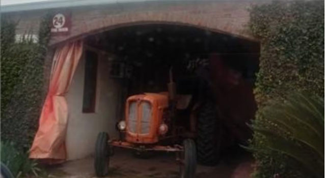 En la imagen se ve al tractor estacionado en uno de los garages ubicados específicamente para las personas que asisten al lugar.