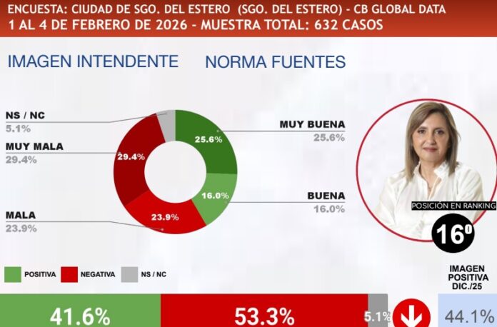 En el otro extremo del ranking, los intendentes peor calificados del mes de febrero de 2026 son Julio Alak (La Plata), quien se ubica en el último lugar con un 36,2% de imagen positiva; seguido por Emiliano Durand (Salta Capital), con 36,5%; y Pablo Grasso (Río Gallegos), con un 36,8% de aprobación.