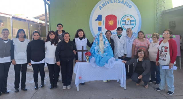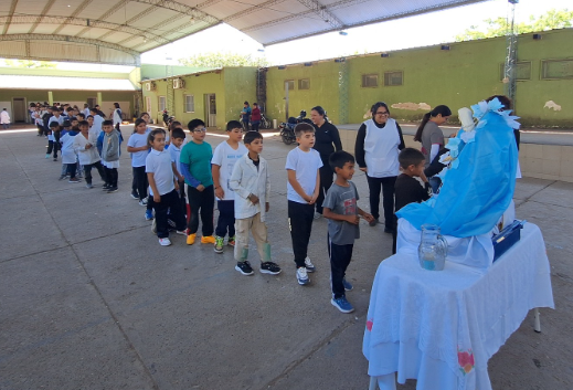 Como parte de las actividades de su mes patronal, este viernes la imagen de Virgen de la Medalla Milagrosa visitó la Escuela N° 409 Manuel Lainez del barrio Agua y Energía.