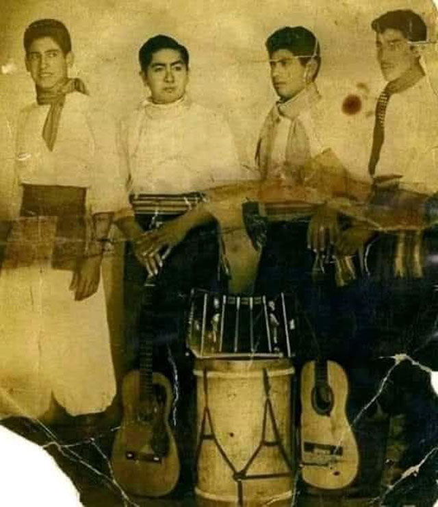 La Primera formación de los Manseros Santiagueños: Hector Castro bandoneón, Leocadio Torres en guitarra, Onofre Paz en guitarra, Rubén Pereyra en bombo y quena.