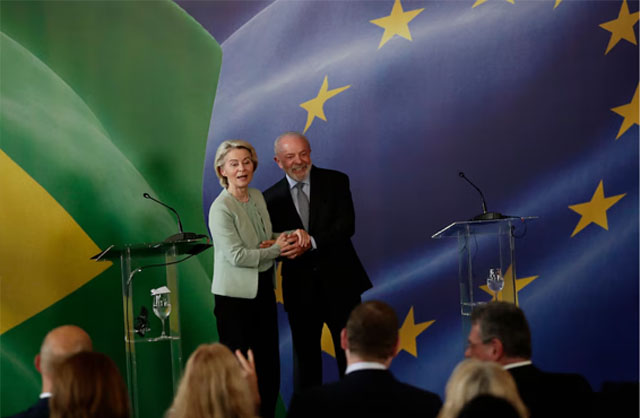 El presidente brasileño, Luiz Inácio Lula da Silva, y la presidenta de la Comisión Europea, Ursula von der Leyen, celebraron el viernes la firma prevista del acuerdo de libre comercio entre la UE y cuatro países sudamericanos al día siguiente, en una ceremonia a la que Lula no asistirá.