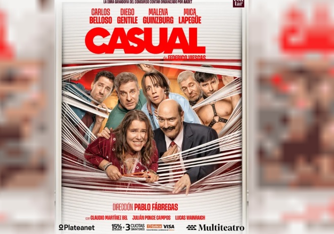 Malena Guinzburg y Carlos Belloso se reúnen en escena para “Casual”, una de las obras más prometedoras de la temporada 2026, acompañados por un elenco de destacados actores como Diego Gentile, Mica Lapegüe, Claudio Martínez Bel, Julián Ponce Campos y Lucas Wainraich, bajo la dirección de Pablo Fábregas.
