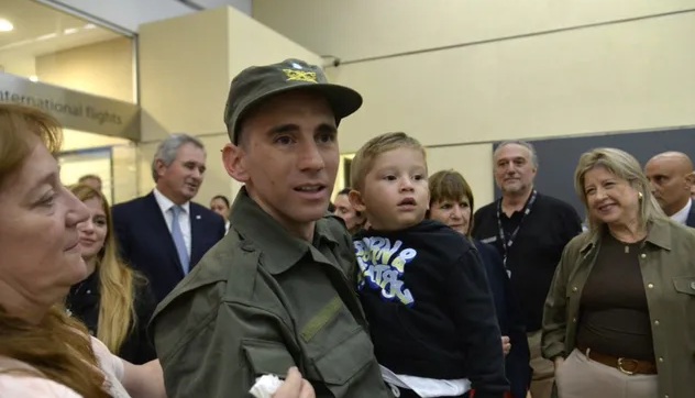El Gendarme Nahuel Gallo, recientemente liberado por el Gobierno venezolano, regresó al país y se reencontró con su esposa, María Alexandra Gómez, y con su hijo Víctor, quienes lo recibieron en el Aeropuerto Internacional de Ezeiza.