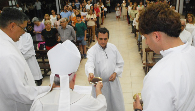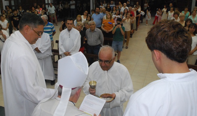 El Obispo Enrique Martínez Ossola presidió la ceremonia a través de la cual los ministros Oscar Trullenque; Ramón Maldonado; Pedro Villalba y Ariel Medina recibieron el Ministerio del Acolitado. La misa se realizó en la capilla Santa Rita y fue concelebrada por el padre Gastón Cuello.