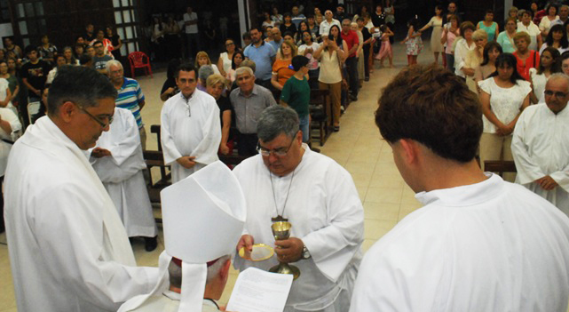 El Obispo Enrique Martínez Ossola presidió la ceremonia a través de la cual los ministros Oscar Trullenque; Ramón Maldonado; Pedro Villalba y Ariel Medina recibieron el Ministerio del Acolitado. La misa se realizó en la capilla Santa Rita y fue concelebrada por el padre Gastón Cuello.