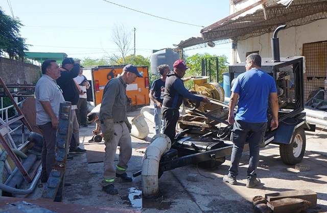 Personal de la Secretaría de Obras Públicas, avanza en el armado e instalación de una bomba extractora de agua, que permitirá optimizar el drenaje y facilitar la extracción del agua acumulada durante las lluvias, reduciendo los inconvenientes ocasionados por anegamientos en la zona.