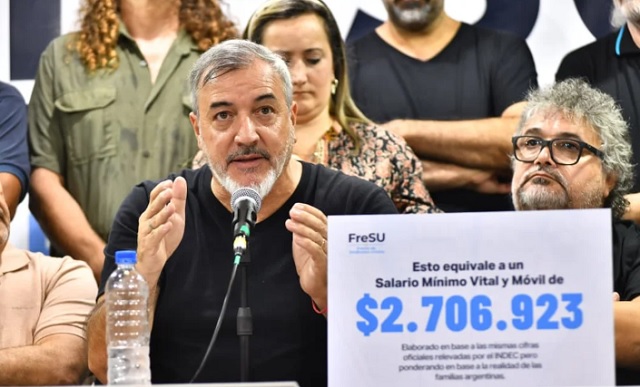 El Frente de Sindicatos Unidos (FreSU) brindó este viernes una conferencia de prensa en la que presentó sus propios números del costo de la canasta básica para los hogares de los trabajadores argentinos.