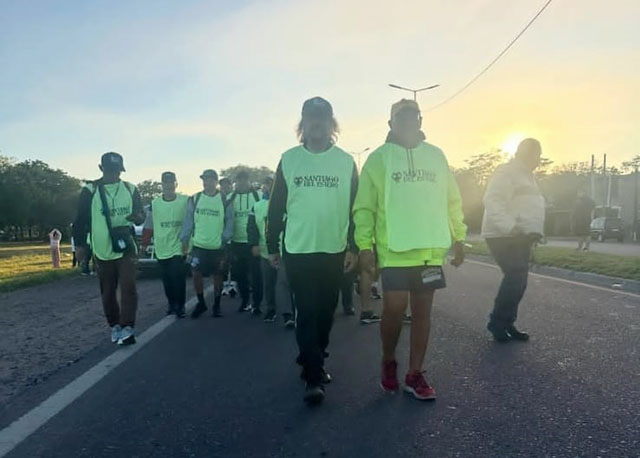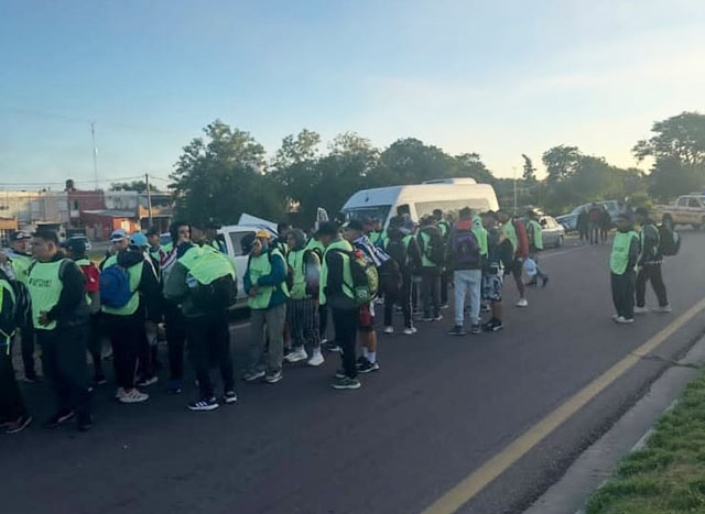Los peregrinos se reunieron en el barrio Autonomía, tras encomedarse a Dios y especialmente a la Virgen María, pisaron la Ruta 64 y comenzaron a caminar.