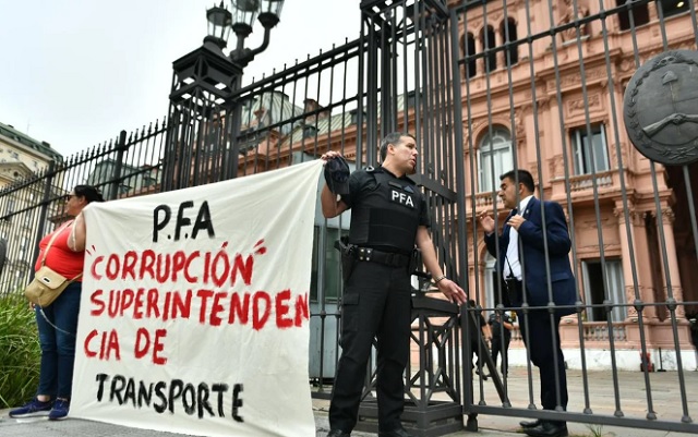 Un agente de la Policía Federal Argentina (PFA) se esposó a la reja de la Casa Rosada por un reclamo salarial, según pudo constatar la Agencia Noticias Argentinas.