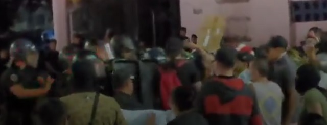 Los miembros de la fuerza de seguridad se concentraron en las calles circundantes a la sede del Poder Ejecutivo local, donde dos patrulleros fueron apostados (uno sobre San Jerónimo y otro en 3 de Febrero sobre San Martín).