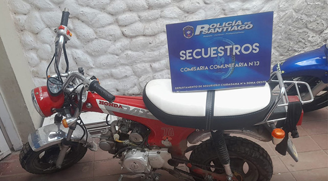 El rodado, un motovehículo marca Mondial modelo Dax 70, sin dominio colocado, se encontraba vinculado a una causa por hurto, iniciada a partir de la denuncia radicada el 22 de febrero por una mujer de 36 años, quien manifestó que desconocidos le sustrajeron el vehículo desde un garaje del barrio San Martín.