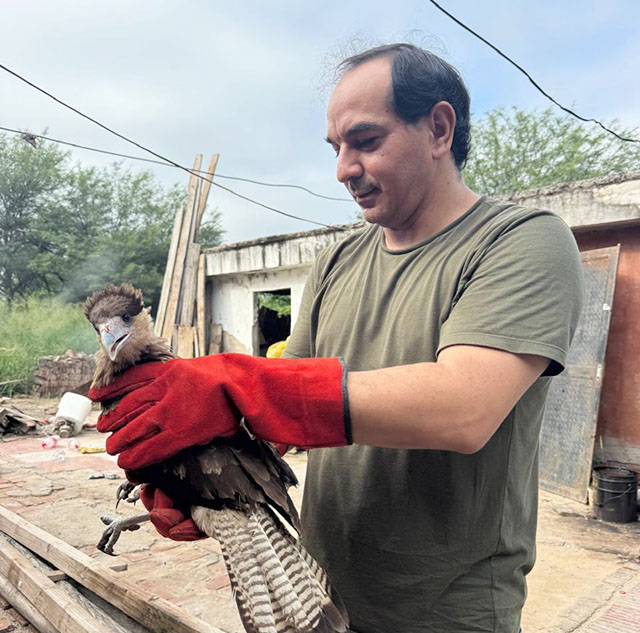 De inmediato el personal de Alerta Banda junto al especialista en aves, Oscar Quiroga se constituyeron en el lugar y constataron que se trataba de un Carancho (Caracara plancus) de aproximadamente tres meses de edad, el cual presentaba una lesión en una de sus alas y las plumas de ambas alas cortadas.