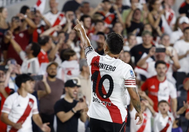 River aumentó la ventaja en la primera llegada de peligro del segundo tiempo, a los cuatro minutos del segundo tiempo, cuando Juanfer Quintero aprovechó un centro rasante desde la izquierda, llegó por el segundo palo y remató de primera, con un disparo seco que entró bajo, por el palo izquierdo de Insfran.