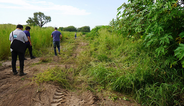 El subsecretario de Planeamiento Urbano, Daniel Olmos; el director de Catastro, Ricardo Bolañez y la jueza del Tribunal de Faltas, María Virginia Arce se constituyeron en las inmediaciones del Canal Revestido a la altura de donde finaliza la calle Yrigoyen desde donde se extiende un desagüe pluvial a cielo abierto.