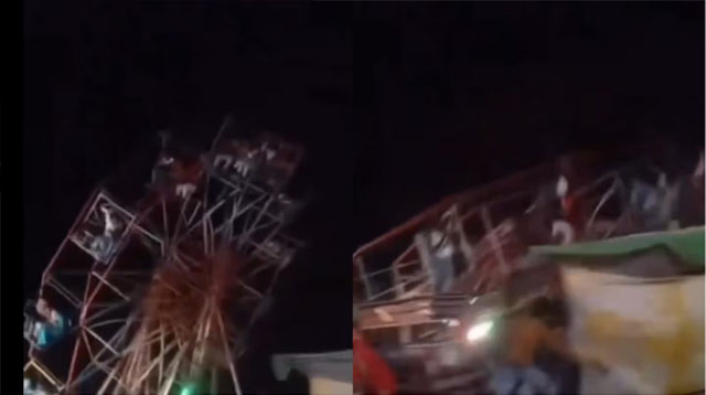 Inmediatamente después, la estructura que gira sobre si misma para dar una vista panóramica a las personas en los asientos, terminó cediendo y desplomándose con fuerza. Algunos participantes del juego salieron despedidos en el aire y muchos otros terminaron debajo de los escombros.