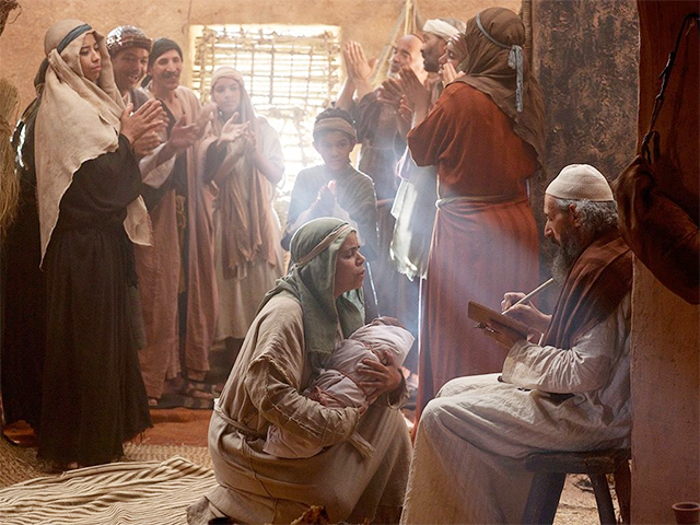 A los ocho días, se reunieron para circuncidar al niño, y querían llamarlo Zacarías, como su padre; pero la madre dijo: «No, debe llamarse Juan».