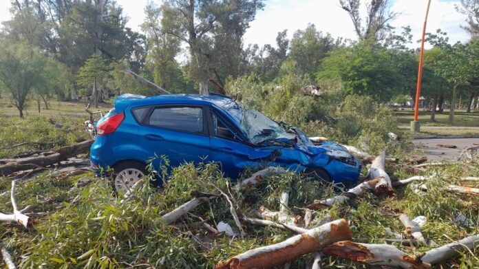 El temporal que azotó la capital santiagueña y zonas de influencia dejó importantes destrozos materiales en varios puntos de la ciudad. Las fuertes ráfagas de viento provocaron caídas de árboles, daños en la infraestructura pública y vehículos particulares.