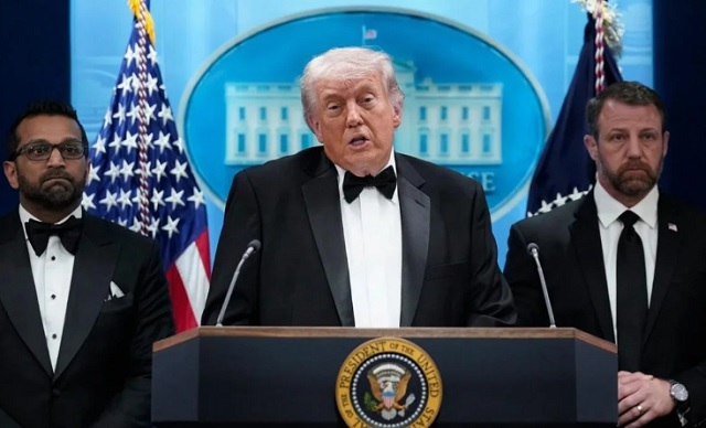Acompañado por la primera dama, Melania Trump, y el director del FBI, Kash Patel, el mandatario brindó detalles sobre la evacuación del hotel Washington Hilton luego de que un hombre armado con un rifle fuera interceptado por las fuerzas de seguridad. «Podría haber sido el ruido de una bandeja o de una bala», graficó Trump al describir la confusión inicial que se vivió entre los invitados de la élite política y periodística.