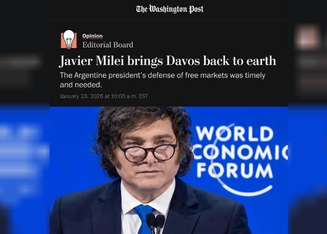 El Consejo Editorial del diario The Washington Post dedicó este viernes un contundente elogio al presidente Javier Milei tras su paso por el Foro Económico Mundial, calificando su intervención como una defensa del capitalismo «oportuna y necesaria» que «trajo a Davos de vuelta a la tierra».
